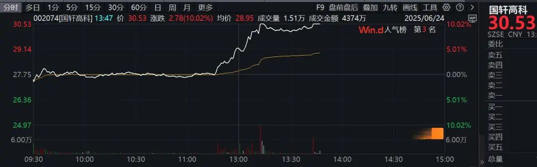 固态电池概念股午后持续走高,截至发稿,国轩高科涨停,华盛锂电、利元亨涨超10%,龙蟠科技、湘潭电化等多股此前涨停。